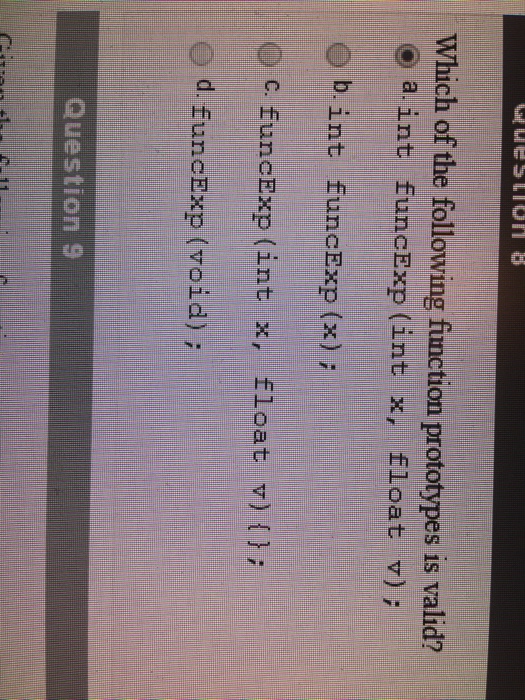 Click hereto get an answer to your question Which of the following is not a valid function prototype in C. QUESTION 1 Which of the following function prototypes is valid.